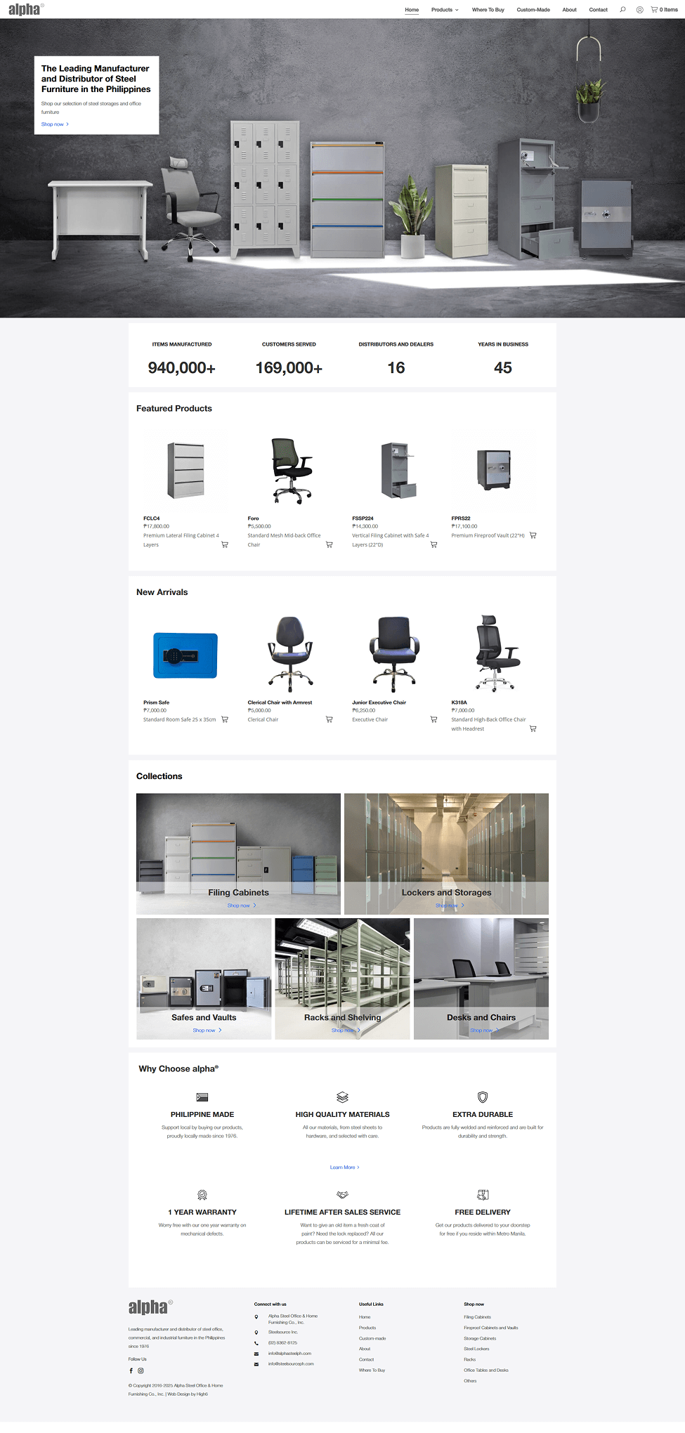 Alpha Steel Office & Home Furnishing Co. Inc. and Steelsource Inc. distribute and retail the alpha® steel furniture line. Manufactured in the Philippines from high-quality materials, alpha® produces standard and customized steel furniture for office, industrial and home use. The brand offers stylish, durable pieces and lifetime after-sales support, maintaining leadership in the market since 1976.