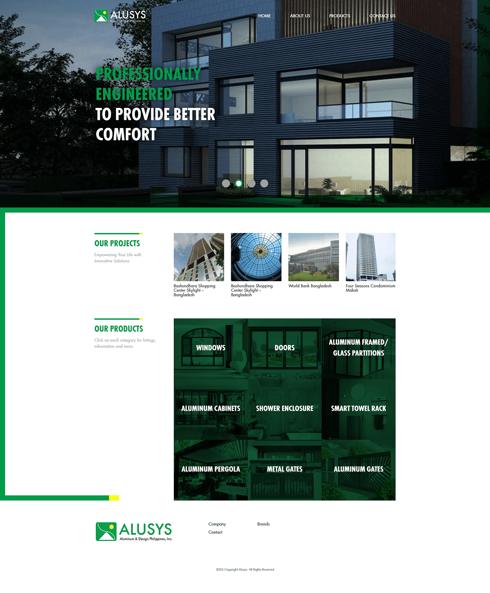 Alusys Aluminum and Design, founded in 2012, supplies architectural metal and glass products for commercial and residential construction. The company offers internationally tested aluminum composite panels, structural glazing, cladding and façade systems. Backed by skilled professionals and global partners, Alusys delivers innovative, world-class building solutions in the Philippine market.