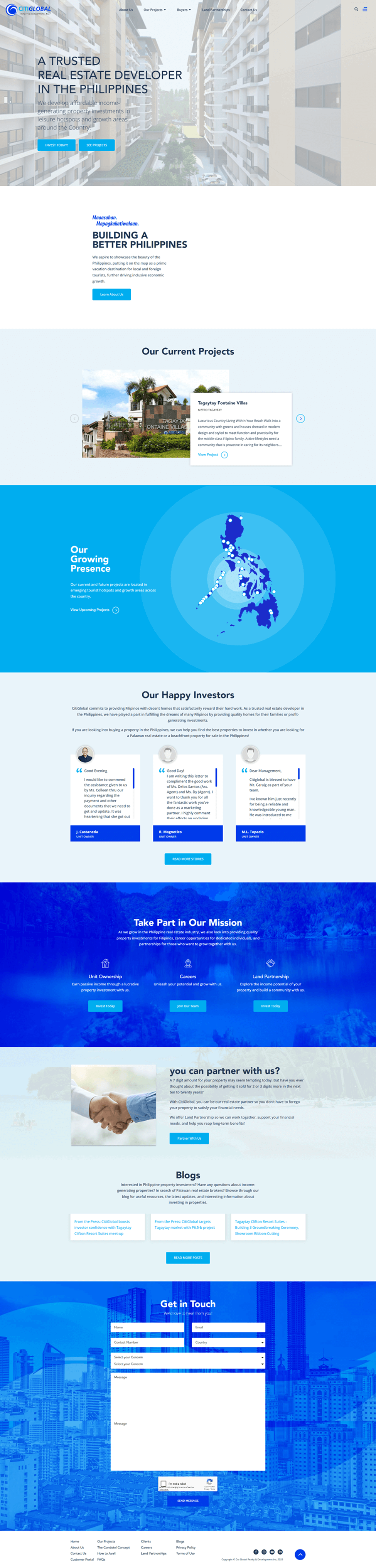 CitiGlobal Realty & Development Inc., founded in 2011, develops affordable, income-generating properties in Philippine tourism hotspots. Its mission is to make resort-style living accessible to middle-income and overseas Filipino investors and its vision is to become the country’s top community developer of exclusive, first-class, income-generating projects. CitiGlobal’s projects include condotels, residential communities and leisure developments.