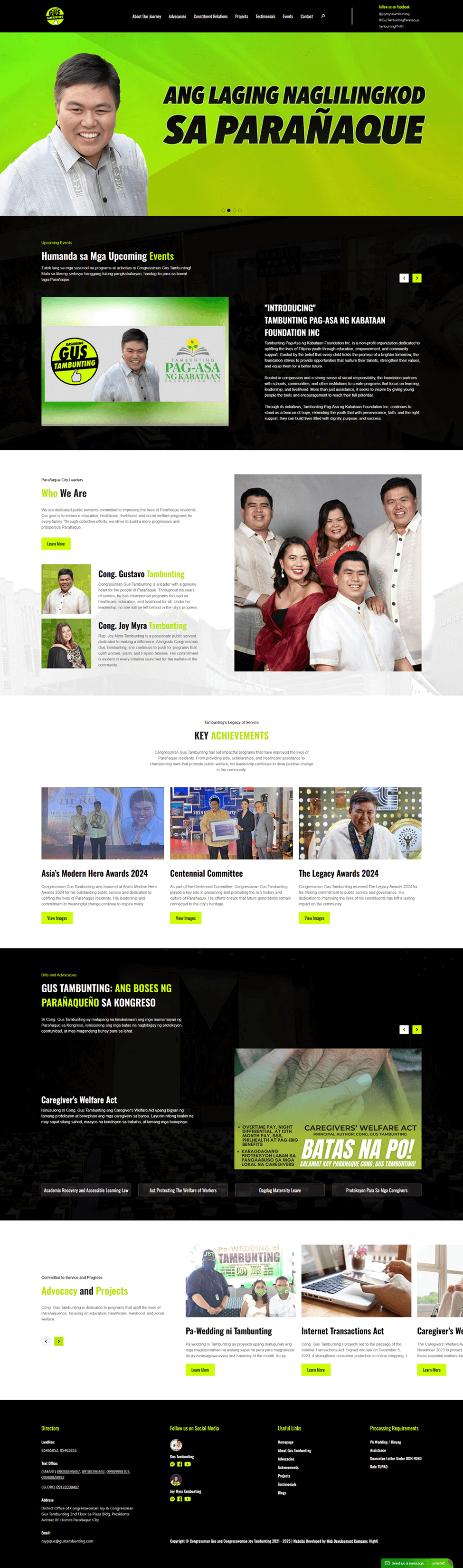 Gus Tambunting is a Filipino legislator and businessman noted for his perfect attendance in the House of Representatives. He authored 77 bills and co-authored 265 measures, championing transparency through the Freedom of Information Bill. Known as an outstanding businessman and civic leader, he leads community programs and family enterprises.