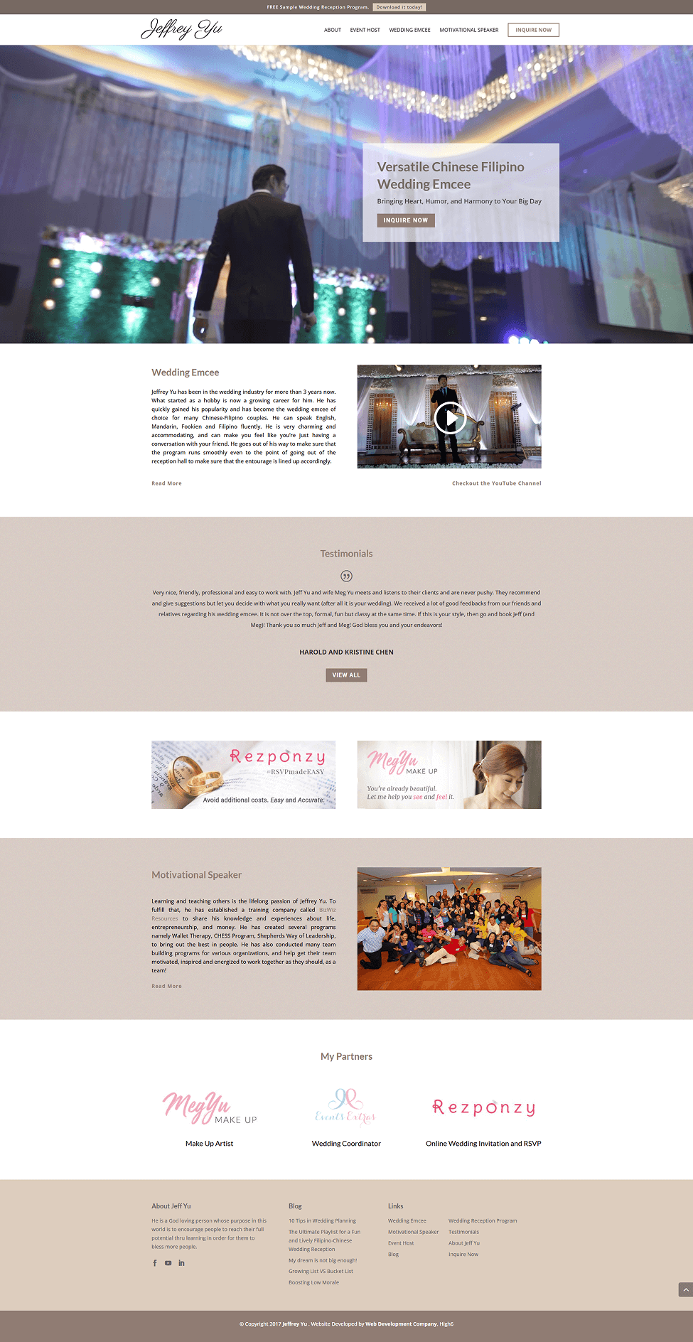 Jeff Yu is a bilingual Chinese-Filipino wedding and Tinghun host, motivational speaker and founder of High6. Guided by Christian values, he offers leadership training, shares his experiences as an entrepreneur and family man and inspires people to create memorable celebrations and meaningful lives through storytelling and mentorship.
