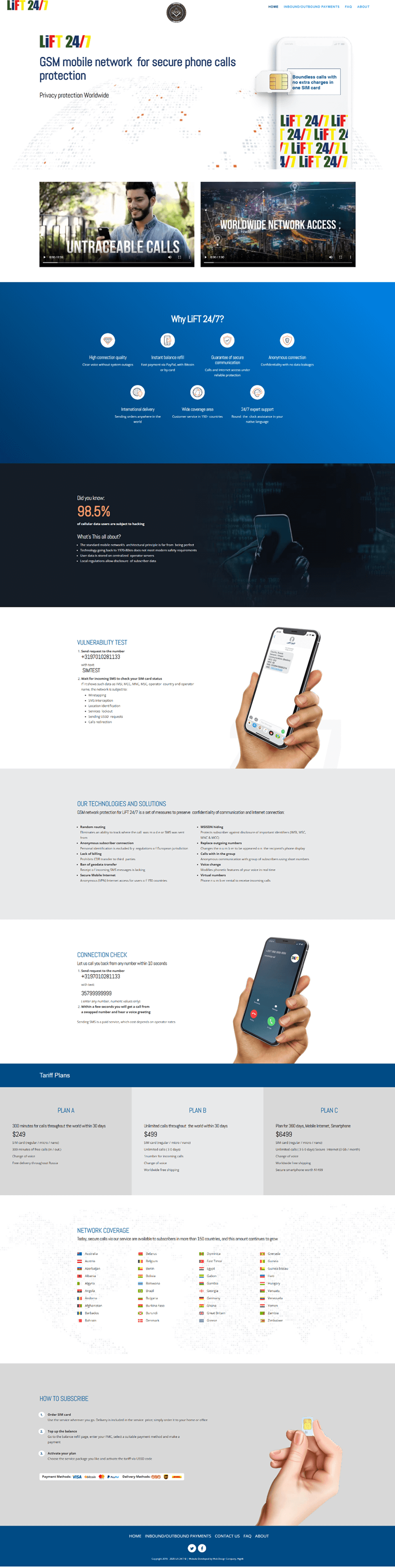 LiFT 24/7 provides a secure GSM mobile network for private calls and internet. Subscribers enjoy high connection quality, instant balance refills, international coverage in over 150 countries and responsive support. The service ensures anonymous, encrypted communications and protects users from hacking and data leaks.