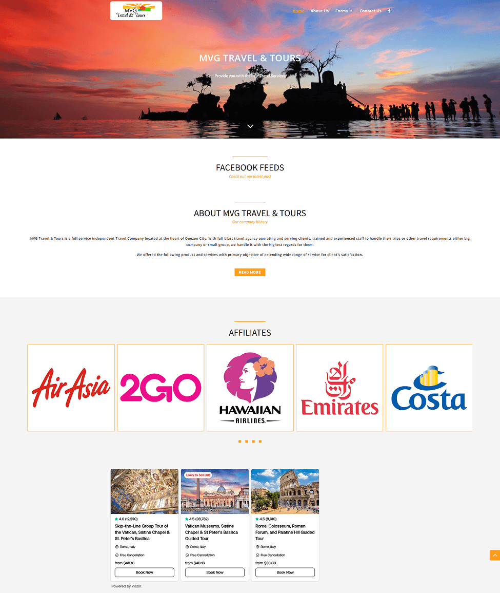 MVG Travel & Tours is a full-service independent travel agency in Quezon City. Its staff handles individual and group trips, offering passport processing, visa assistance, airline ticketing, cruises, tour packages, hotel bookings, document assistance and travel insurance. Guided by a faith-centred mission, the company delivers distinctive travel services and strives to satisfy clients with affordable rates and continual development.